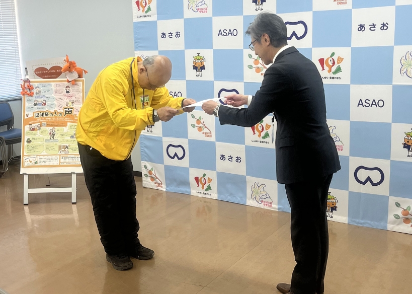このたび、宅配クックワン・ツゥ・スリー川崎麻生・稲城店は、認知症見守り活動への取り組みが評価され、2025年3月12日に川崎市麻生区より感謝状および「認知症の人にやさしいお店」ステッカーを贈呈いただきました。